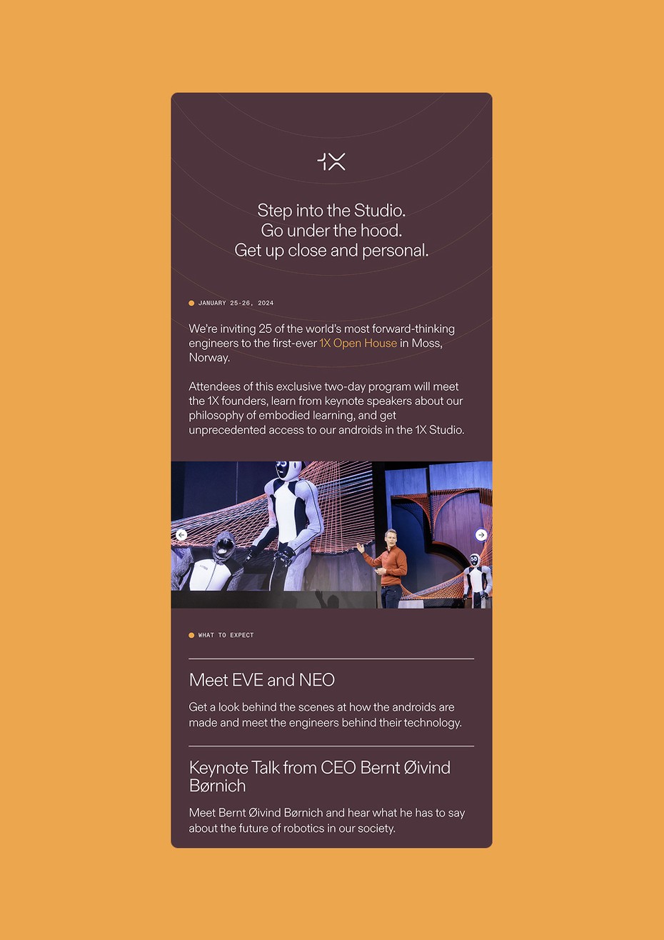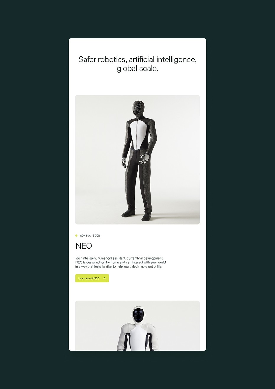 Da 1X Technologies skulle lansere sin nye nettside, utviklet vi løsningen I Webflow basert på design fra GrandArmy NYC. Resultatet ble en interaktiv og on-brand opplevelse, med sømløse animasjoner som ga liv til det teknologiske uttrykket rundt 1X. Prosjektet ble gjennomført på bare to uker, fra oppstart til lansering.