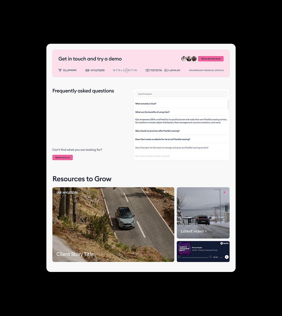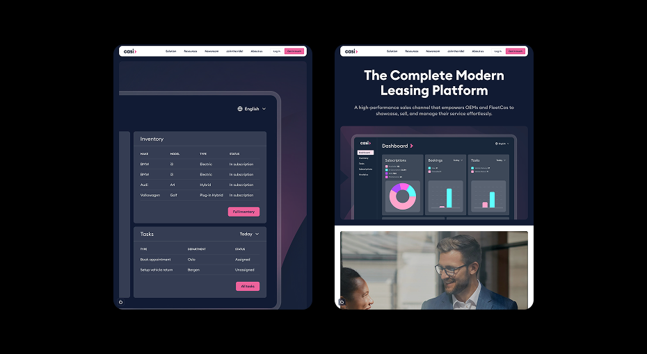 Casi tilbyr programvare for bedrifter som håndterer bilparker, både for leasing og utleie til privatpersoner. Plattformen gir oversikt, effektiviserer drift og gjør det enkelt å administrere biler, kontrakter og kunder – alt på ett sted.